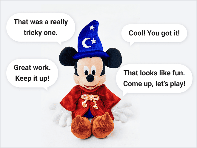 “Cool! You got it! Great work! Keep it up! Never mind. You’ll get it next time…”